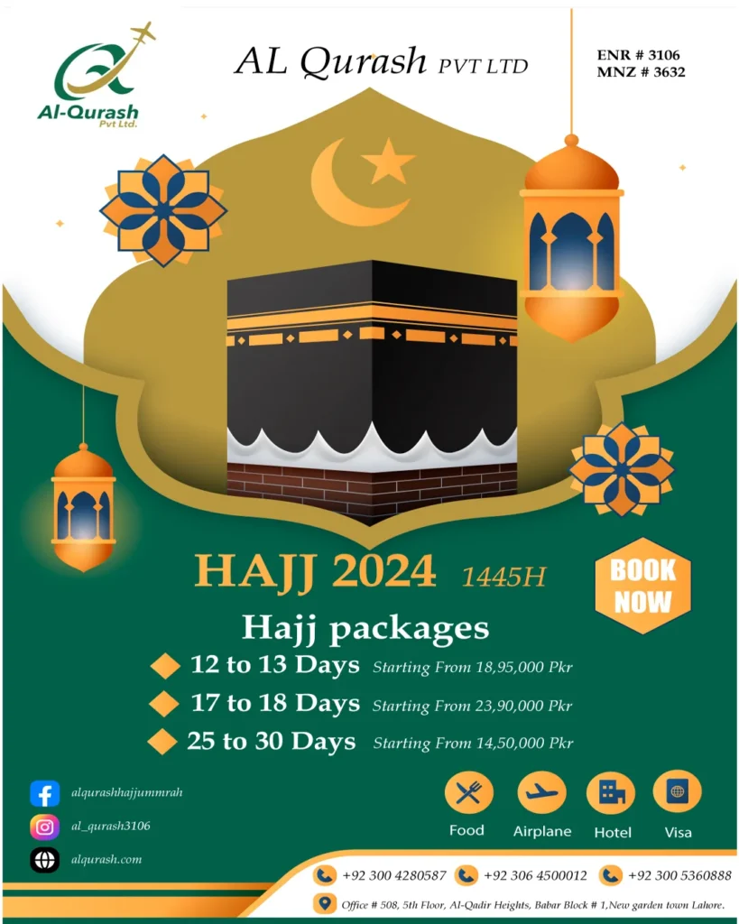 “Embark on your sacred journey with us, where every step from your doorstep to the Kaaba’s embrace is meticulously planned and executed. Our seamless Hajj experience ensures that your spiritual pilgrimage is filled with peace, devotion, and unforgettable moments of connection with the divine.”